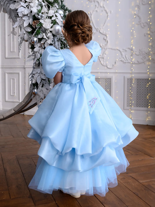 Mirana Designer elegant dress with rose-shaped sleeves BLUE